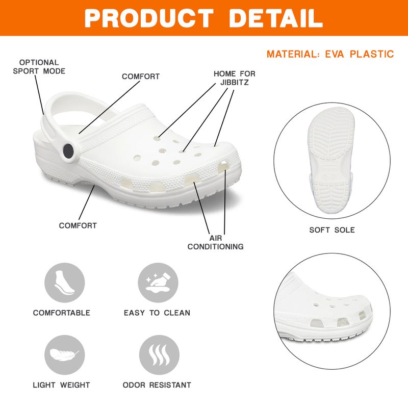 A lightweight non-marking outsole with a sporty striped midsole delivers flexible traction. - Customization: We make adult crocs set on demand, so give us your design to create your one-of-a-kind crocs. Creative 3D print will make your crocs set more gorgeous and vivid that touch your personality. The design is printed with new age printing technology, direct to garment. It is printed with water-soluble and eco–friendly ink. It is cured with a heat treatment process to ensure the color-fastness and lasting durability of the design. The color will not fade, it will stay nice and vibrant for years to come!